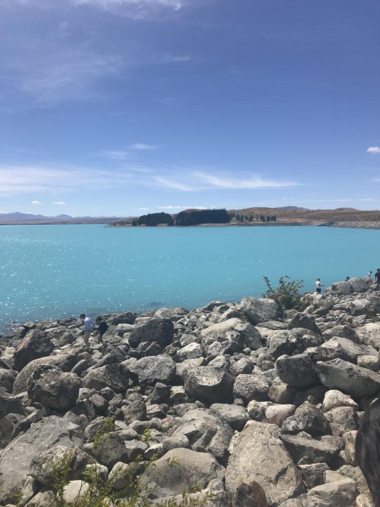 Von Queenstown ging es dann weiter zum Lake Tekapo. Auf dem Weg dorthin sind wir an den blausten Seen vorbei gekommen, die ich in meinem ganzen Leben gesehen hab. Das Wasser war einfach so hellblau und klar.