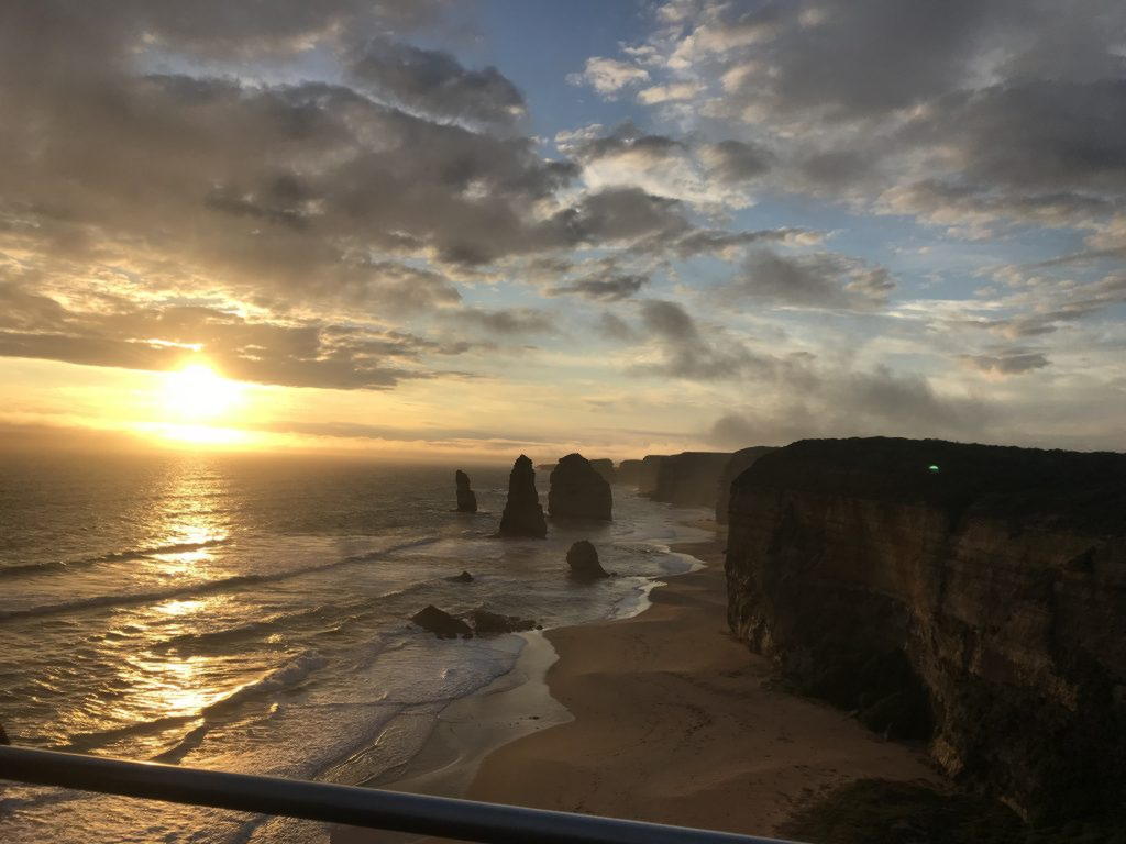 Die Fahrt war aufjedefall wunderschön. Wir hatten zwar nicht die Zeit bis zum Ende zu fahren, da wir insgesamt nur eine Nacht und somit 2 Tage unterwegs waren, aber solange man bis zu den 12 Aposteln kommt, hat man alles erreicht. Der Stop bei den 12 Aposteln war meiner Meinung nach der schönste, aber natürlich waren auch alle anderen wunderschön. Nachdem wir dann bei den 12 Aposteln den Sonnenuntergang geschaut haben, wollten wir auf dem Parkplatzboden (es gab leider keine Sitzmöglichkeiten) unsere Wraps essen. Unser gemütliches Dinner wurde leider durch einen Fuchs unterbrochen, der uns angegriffen hat. Wir waren alle so panisch, weil wir erst dachten der Fuchs wär eine Schlange und als wir ihn richtig sahen, dachten wir er wär ein Dingo. Wer rechnet denn bitte damit, dass man in Australien von einem Fuchs angegriffen wird.
