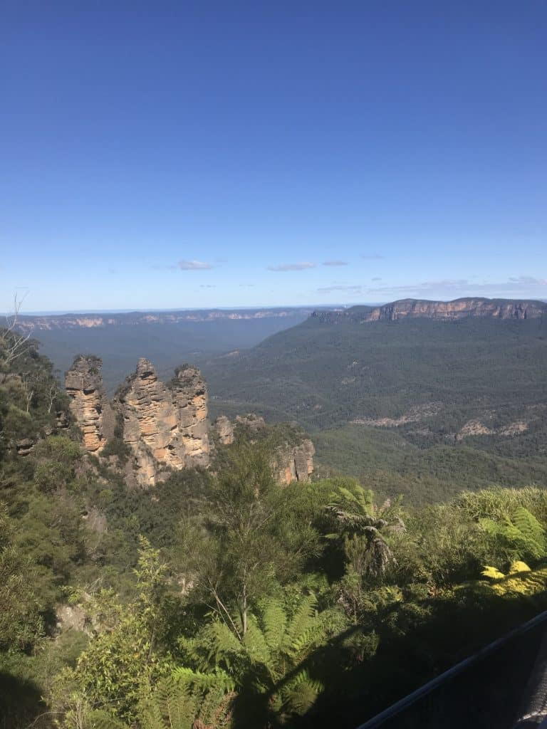Was man natürlich auch machen muss ist zu den Blue Mountains fahren. Und das haben wir auch gemacht. Leider gab es ein Problem mit den Schienen, wodurch wir anstatt 3 Stunden 6 Stunden mit Bus und Bahn zu den Blue Mountains gebraucht haben. Gut, dass wir sonntags dorthin gefahren sind, wo es den ganzen Tag nur ca. 2 Dollar kostet um mit der Bahn und dem Bus zu fahren. Sonst wären wir jetzt pleite. Trotz dieser Weltreise hat es sich gelohnt und die Aussicht hat uns ein wenig an Neuseeland erinnert.