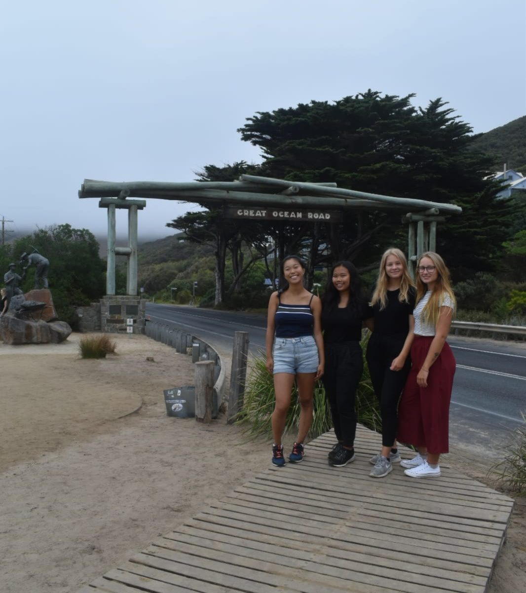 Zusammen mit unserer Freundin Sarah, die wir auf unser Tour damals mit dem Segelschiff kennen gelernt haben und einer aus Schottland (wir waren also 2 blonde und 2 Asiaten), haben wir uns ein Auto geliehen und sind zusammen die Great Ocean Road entlang gefahren. Für alle die nicht wissen was das ist. Das ist eine 400 km lange Straße, die direkt an der Küste entlang führt. Ein absolutes Muss, wenn man in Australien ist.